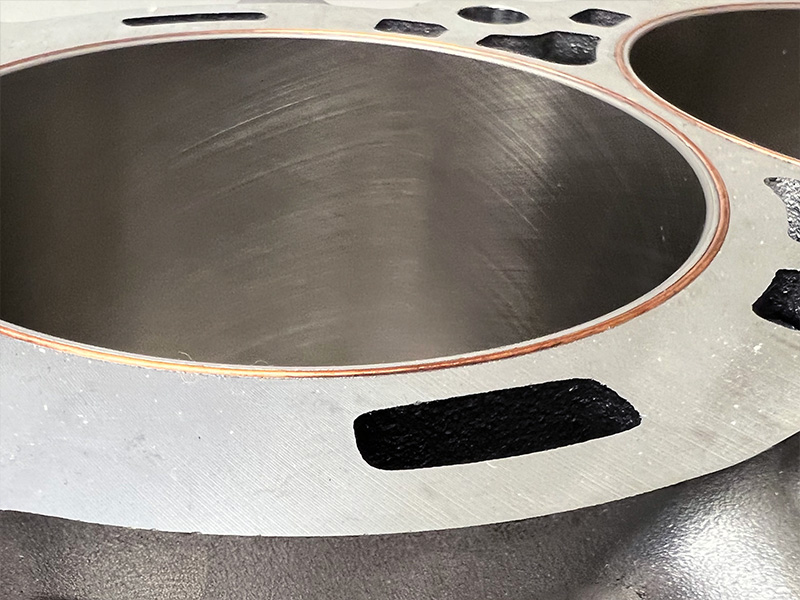 Copper O-Rings with .012" protrusion are inserted around the cylinder bores to contain combustion.